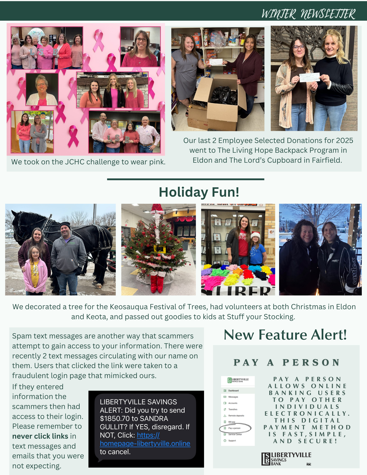 Being a local bank means we are connected on many levels to the communities that we serve. Our staff members reside in these communities, their kids go to the schools and are involved in sports, 4-H and the fine arts. We are involved in committees and sit on boards of groups that strive to better our little towns. It is our great passion to see each one of our communities flourish. We volunteer our time and continuously make donations to see that this happens.